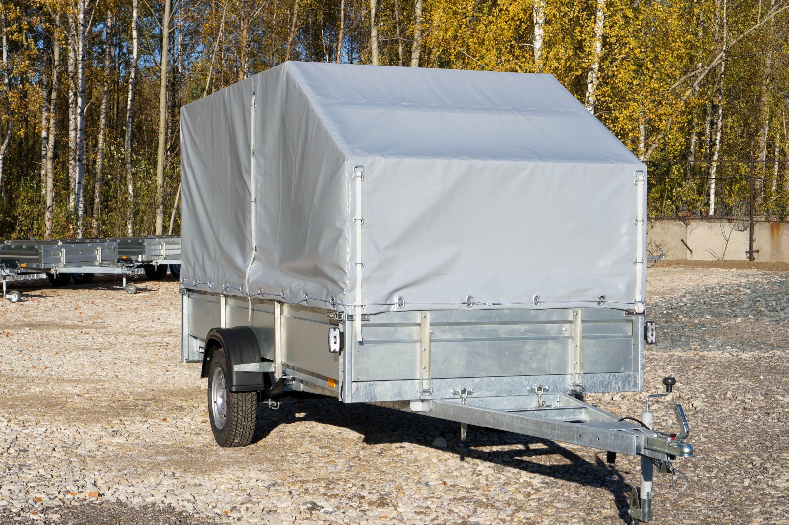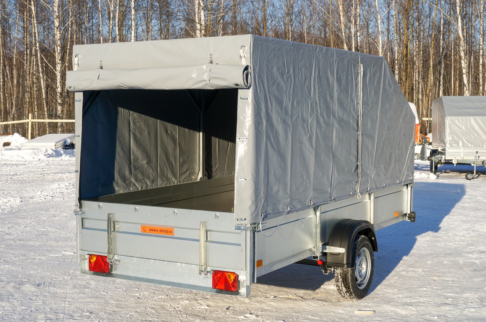 Может комплектоваться аэродинамическим тентом и каркасом высотой 1200мм от борта.