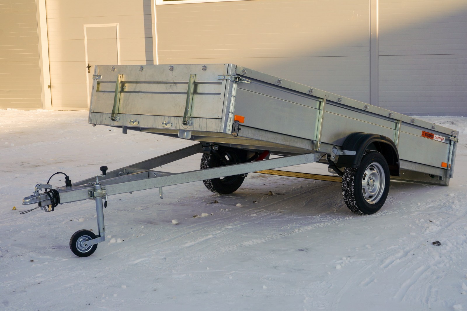 Борта гнутые с ребрами жесткости, монолитные по всей длине прицепа, высотой 400мм. Передний задний борт откидные быстросъемные с увеличенными по высоте петлями, усилены фанерой, которая утоплена внутрь борта и не «съедает» внутренний размер прицепа.